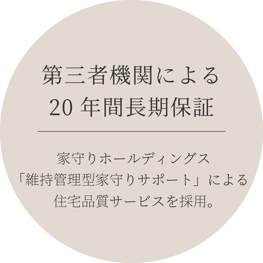 全6回の建物品質検査と20年間4回の定期点検、補修費用サポートに加え、24時間365日緊急対応まで完備。