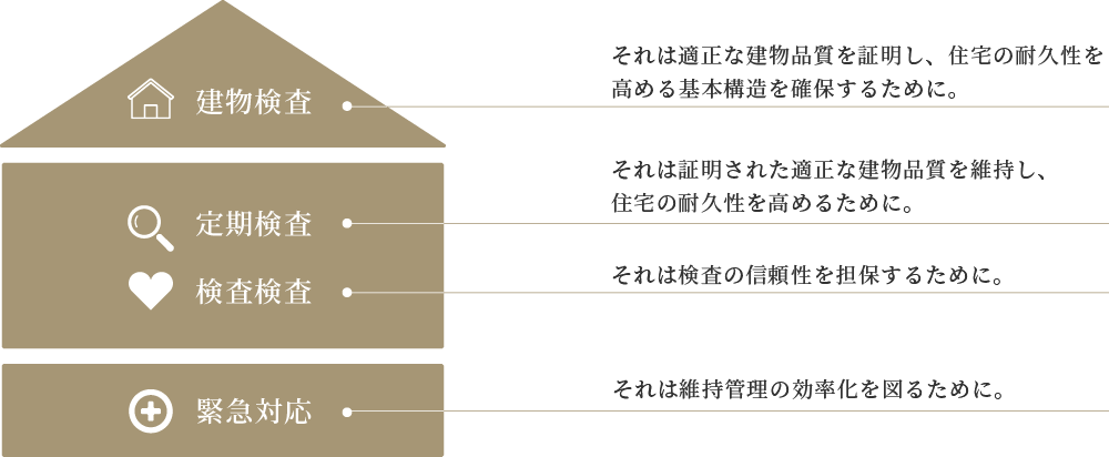 住まいの発見館が培った「施工技術」、指定検査会社の「建物検査技術」、ハウスビジョンによる検査の「標準化」ならびに検査品質の向上と、より良いサービスの開発。