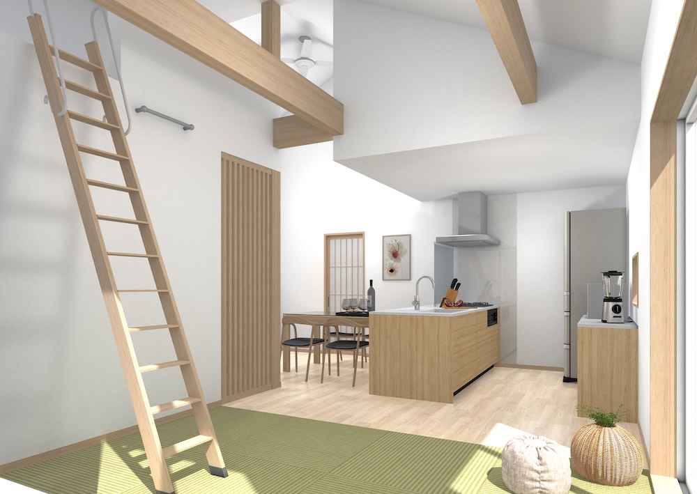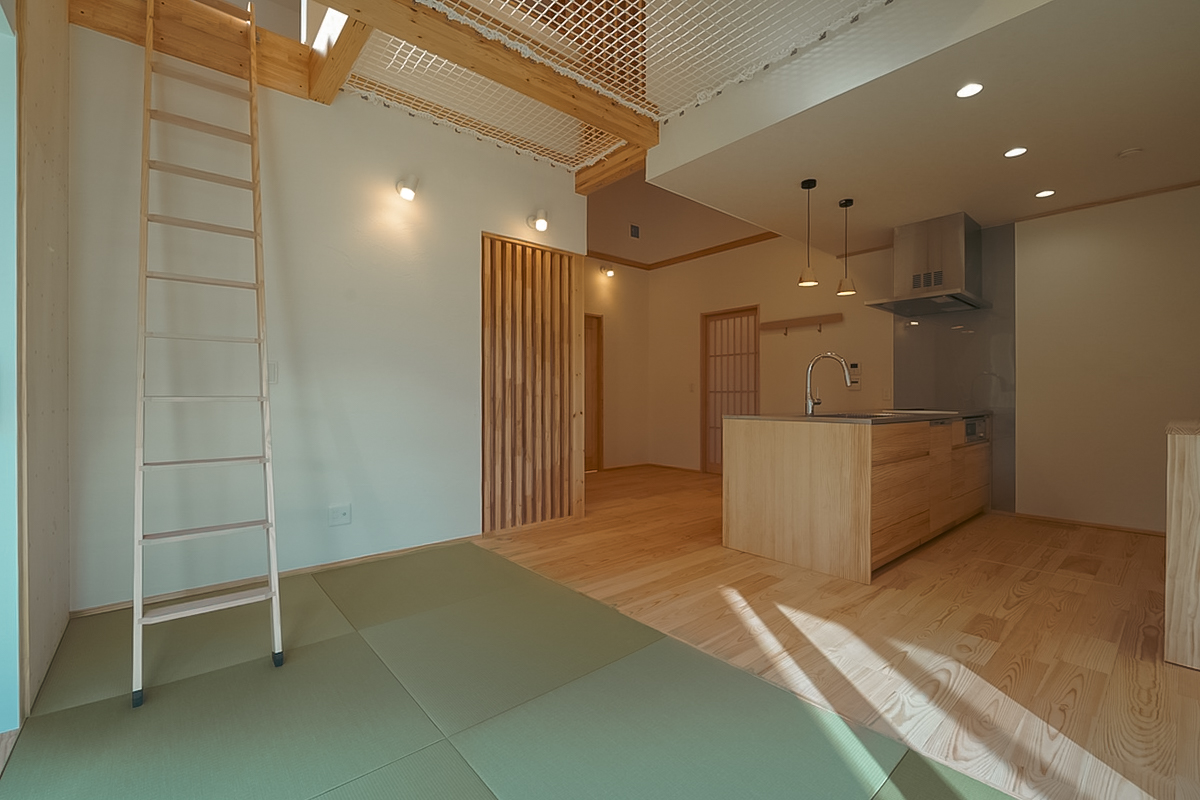 ボルダリングやロフトて遊び心を取り入れ、暮らしそのものを楽しめる住まい。廊下を省いたコンパクトな設計で、空間を無駄なく活用しています。
